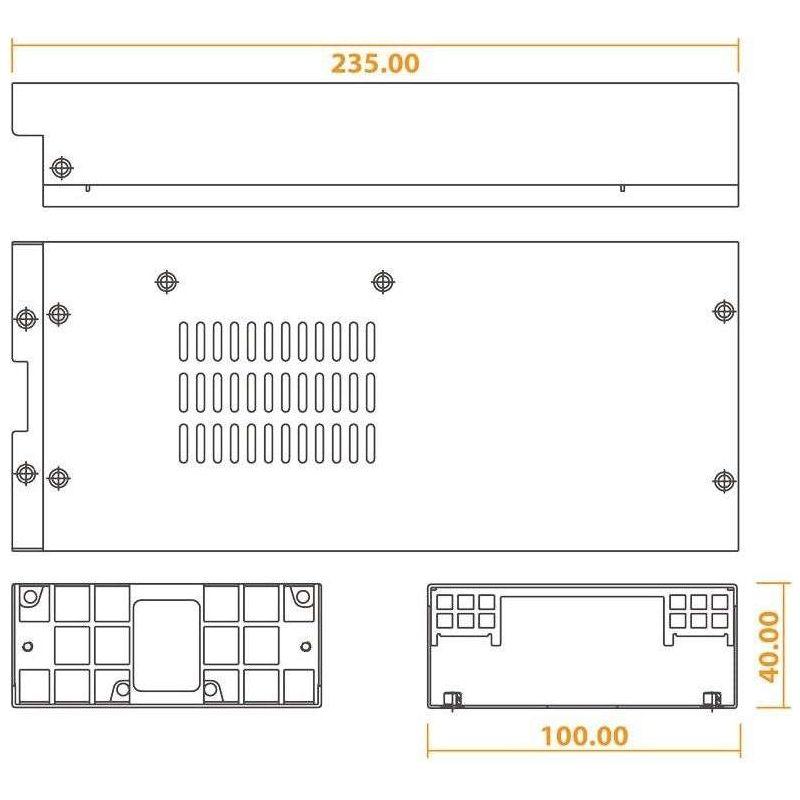 | Dielectric withstand, input to frame/ground | 1800 VAC, 1 sec |