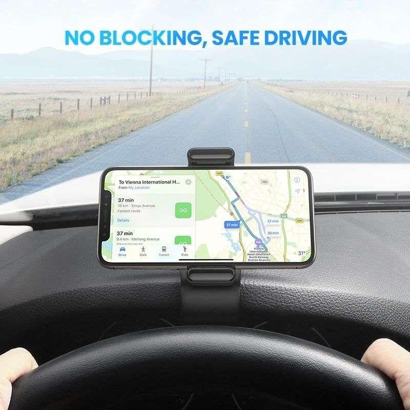 UGREEN Dashboard HUD Car Clip Holder secures your cell phones right above the steering wheel without blocking the driving view. With HUD(Head-Up Display) design, the Dash Clip Car Mount keeps your phone/Sat Nav right in front of you, so you no longer need to look down or turn your head to read the information, which greatly improves your safety.