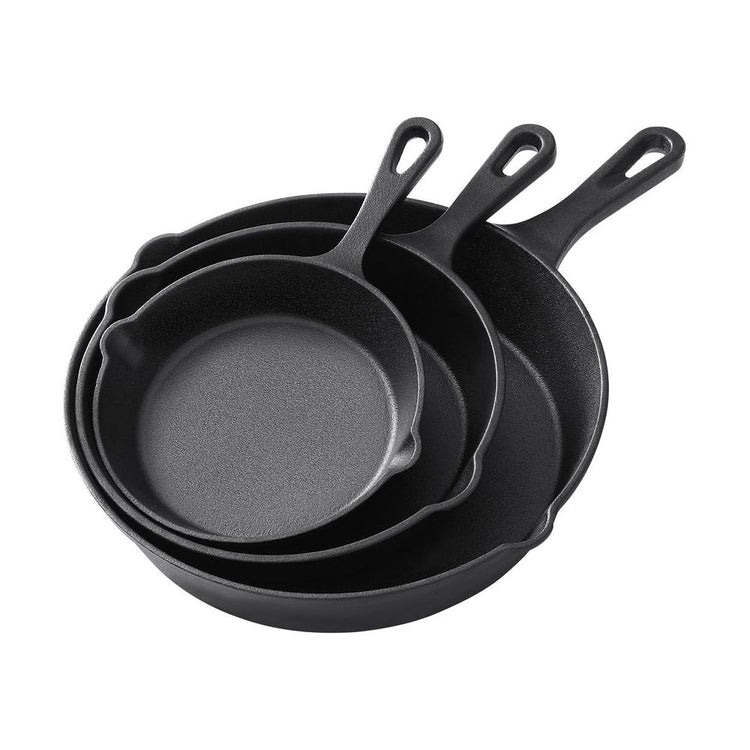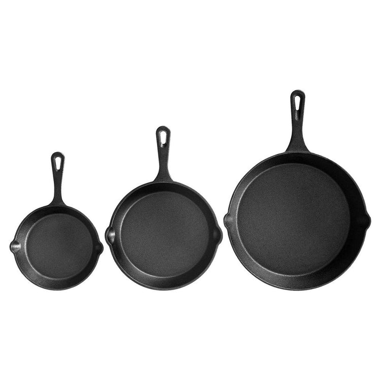 Introducing the 5-star Chef Cast Iron Frying Pan Set, a must-have addition to your kitchen cookware collection. This set includes 3 frying pans, each with a classic cast-iron look that adds timeless elegance and expertise to your cooking experience. With a PFOA-Free and PIFE-Free construction, these frying pans ensure a safe and healthy cooking environment. The absence of any chemical coating guarantees that your food remains free from harmful substances. Two pouring spouts allow you to drain off oil and pour sauces or other dishes with ease. Additionally, these pans offer fast heat transfer and excellent heat retention, allowing you to cook your meals quickly and efficiently. Suitable for all stovetops, this frying pan set is a versatile choice for any kitchen.