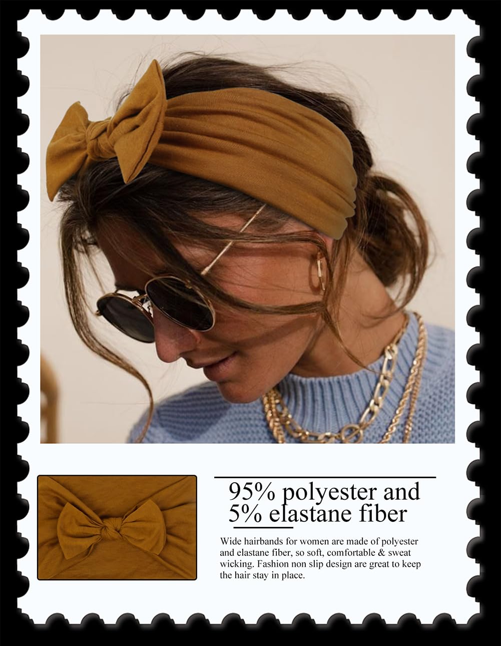 Wide knotted hairband with great elasticity can fit most head size, stay in place without the pressure on your head.