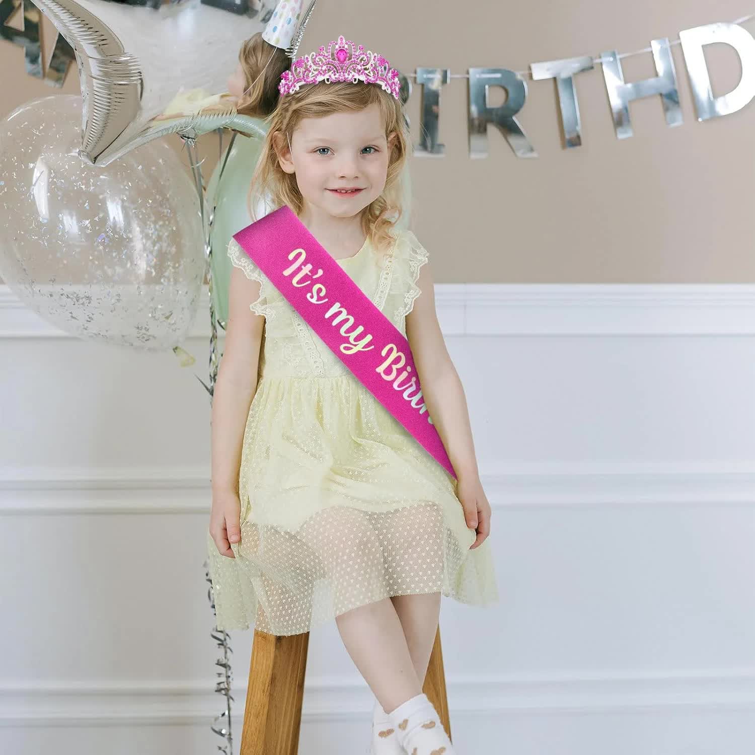 Twinkling Birthday Sash: The Sash full of fine flashes perfectly matches the crown, and the lettering changes color with the light, making you stand out from the crowd.