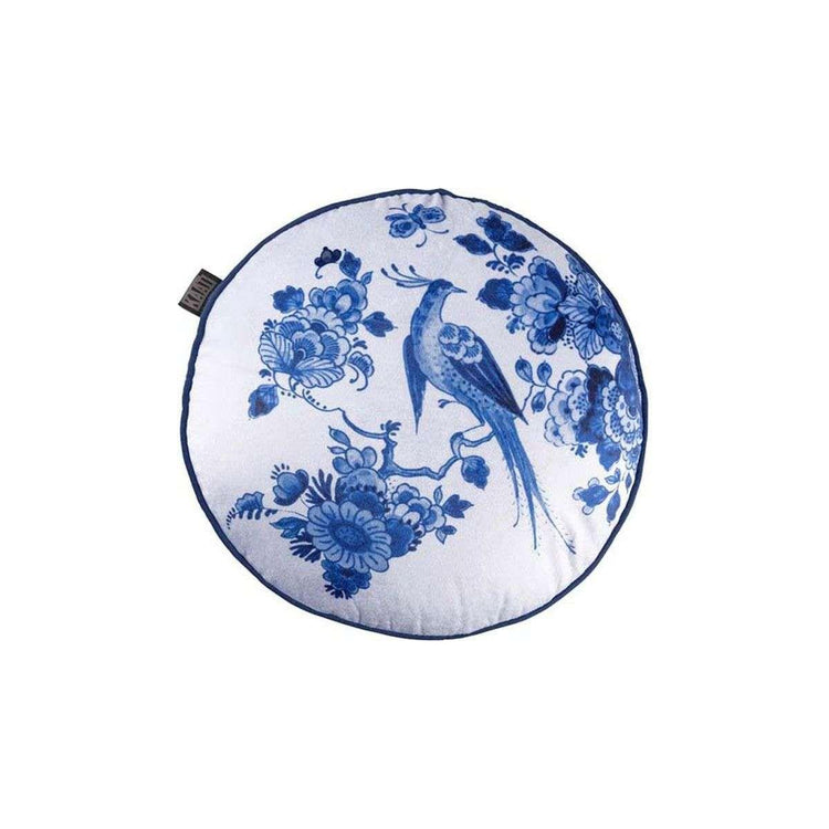 The Blue Bird Round Filled Cushion 40cm Diameter by Bedding House decorative cushion brings a sense of tranquillity into any interior. The white background beautifully emphasizes the blue print. This elegant decorative cushion pairs beautifully with the Delft Blue duvet cover. This Blue Bird decorative cushion is made from 100% polyester velvet. The back is cobalt blue. The filling is made from 100% polyester. The cushion has a diameter of 40 cm and has a zip along the bottom. The cushion cannot be washed in the washing machine and is not suitable for tumble drying.
