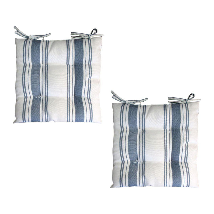 Set of 2 Outdoor Polyester Striped Chair Pads 40 x 40cm White Blue