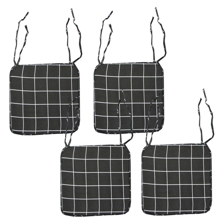 Add comfort and decorative touch to your favourite chairs with this Set of 4 Square Foam Chair Pads with Ties 41 x 41 cm. Each chair pad is approx 2.5cm thickness. Features a checked design printed in neutral colour tones for a classic vibe. It comes with a tie that prevents the pads from moving around when you sit on it. It is made from quality and comfortable Polyester fabric and Foam filling for ultimate comfort.