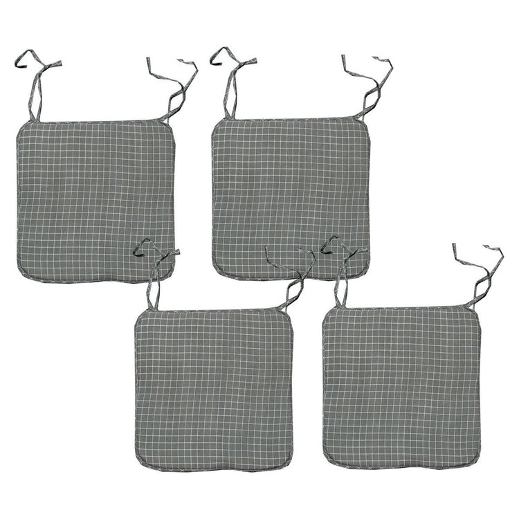 Add comfort and decorative touch to your favourite chairs with this Set of 4 Square Foam Chair Pads with Ties 41 x 41 cm. Each chair pad is approx 2.5cm thickness. Features a checked design printed in neutral colour tones for a classic vibe. It comes with a tie that prevents the pads from moving around when you sit on it. It is made from quality and comfortable Polyester fabric and Foam filling for ultimate comfort.