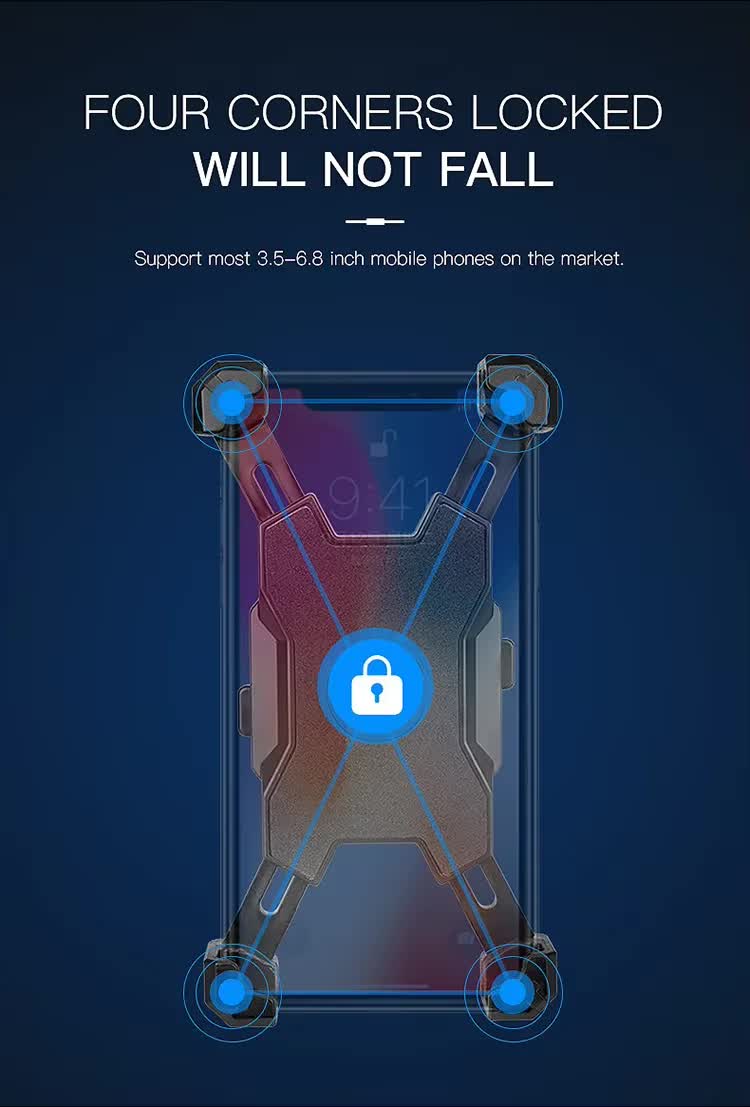 • Ultra-Secure Four-Corner Grip: The mechanical locking mechanism with four sturdy arms firmly locks your device in place, providing exceptional stability. It is designed to hold your phone securely even on bumpy trails and rough mountain roads.