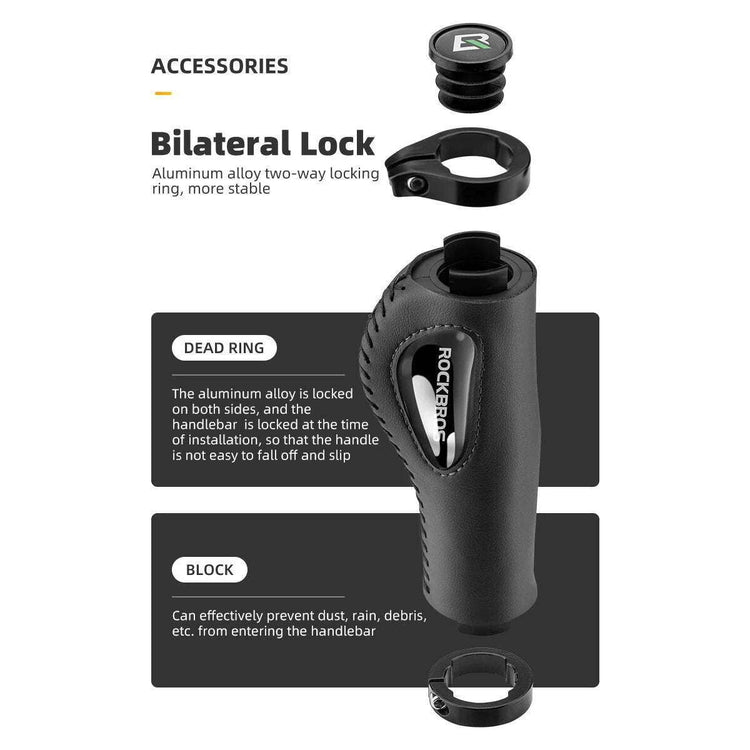 Deluxe Hand Grips Shock Absorbing Rockbros MTB Mountain Bike Tourer Double Lock BLUE Handlebar Grips Anti-skid 2.22cm