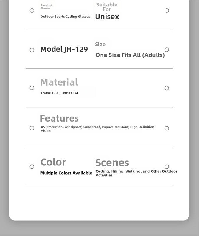Utilizes high-definition optical-grade lenses with spherical or cylindrical designs to ensure edge-to-edge clarity without distortion, enabling accurate judgment of road conditions and distance for enhanced cycling safety.