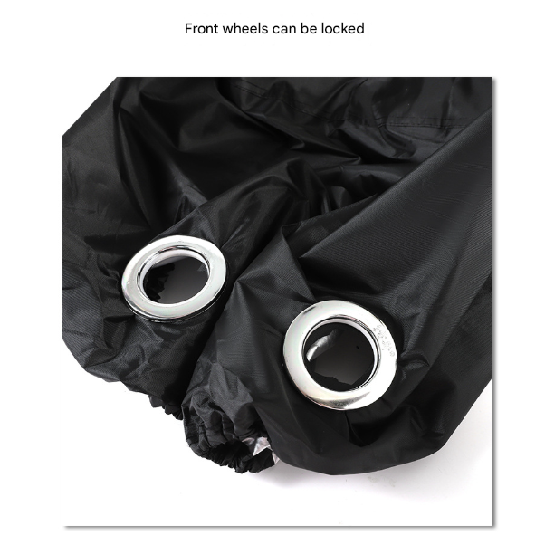 • Enhanced Security: Equipped with two metal lock holes at the front wheel area, allowing you to use a standard bike lock to secure both your bicycle and the cover together for added anti-theft protection.