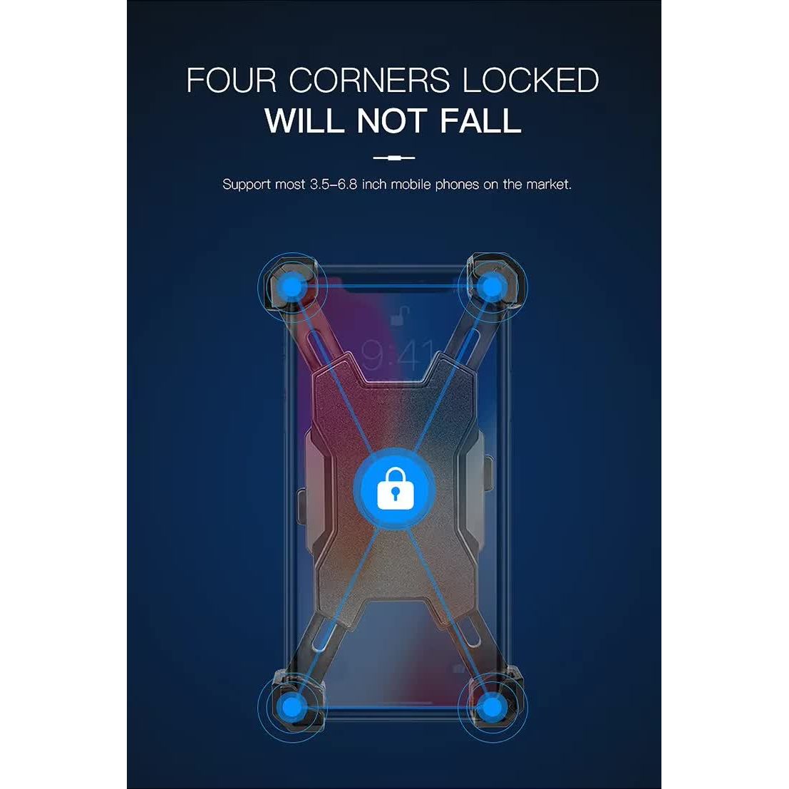 • Ultra-Secure Four-Corner Grip: The mechanical locking mechanism with four sturdy arms firmly locks your device in place, providing exceptional stability. It is designed to hold your phone securely even on bumpy trails and rough mountain roads.