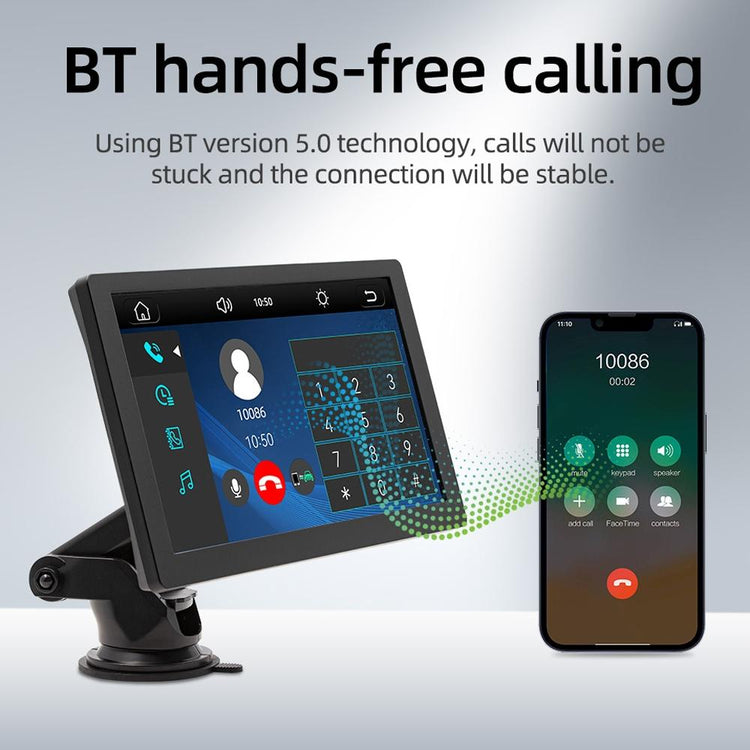 • Supports wired and wireless mobile phone screen projection, reversing image, built-in speaker, TF card, AUX port audio output (3.5MM), and reversing video input (2.5MM)