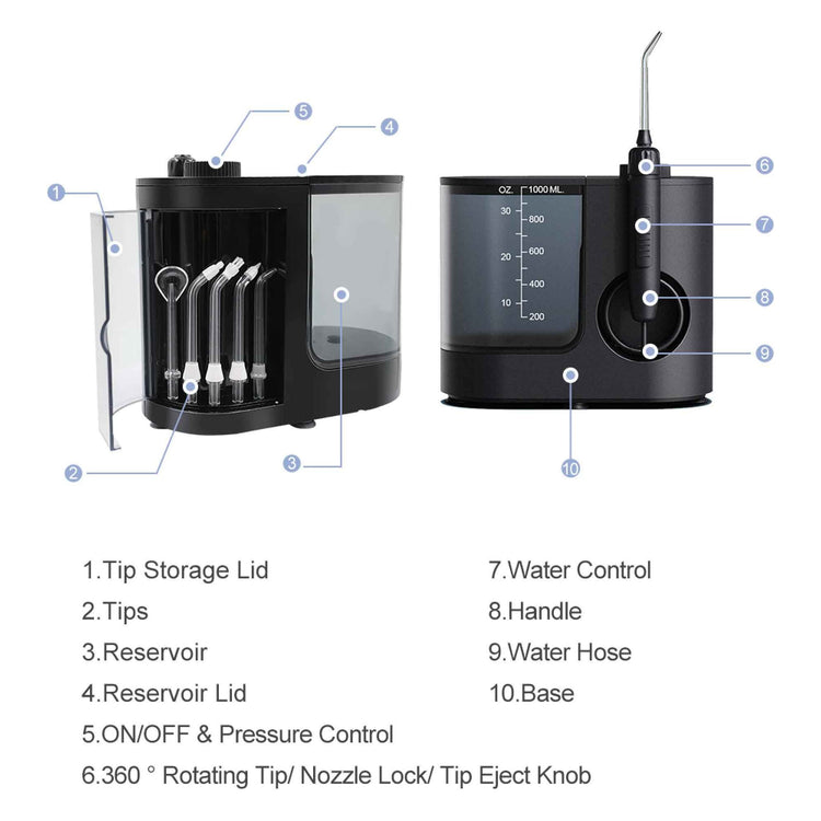 This dental water flosser is an essential dental care device for every family. It can clean deep between and below the gum-line and help keep you orally healthy with its high frequency pulses of water.