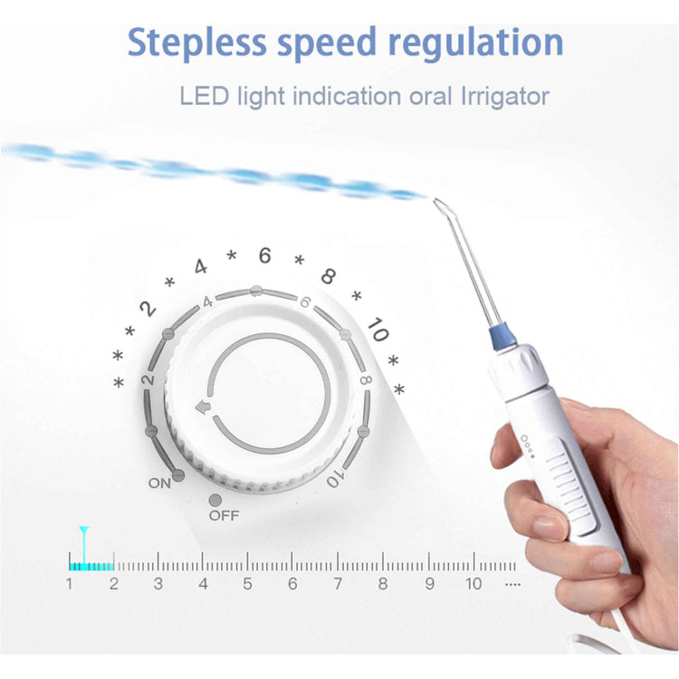 This dental water flosser is an essential dental care device for every family. It can clean deep between and below the gum-line and help keep you orally healthy with its high frequency pulses of water.