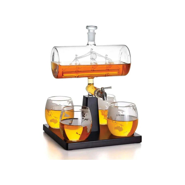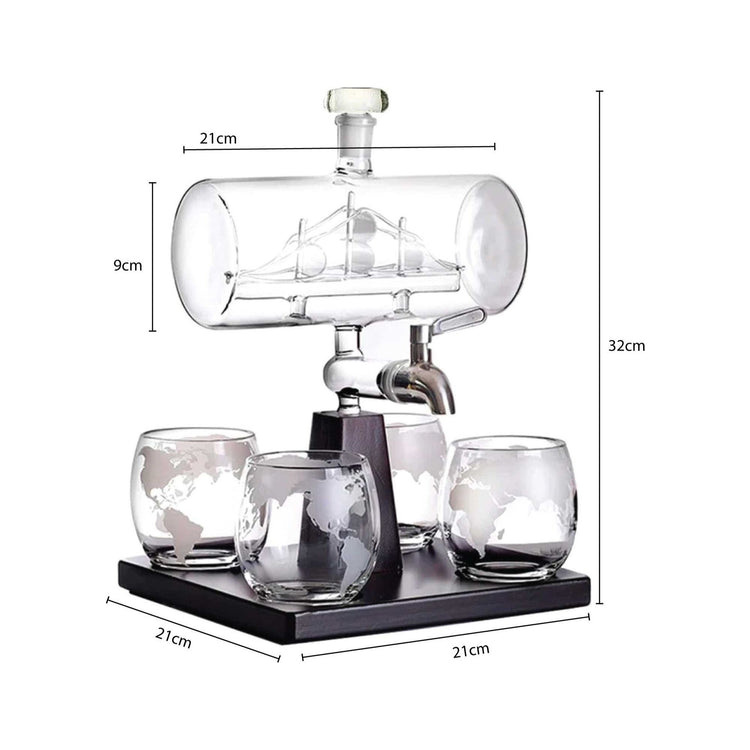 • Artistic Design: The decanter holds a meticulously detailed antique ship inside a hand-blown frame. Each glasses features detailed globe etchings, adding a touch of sophistication and style to your home bar.