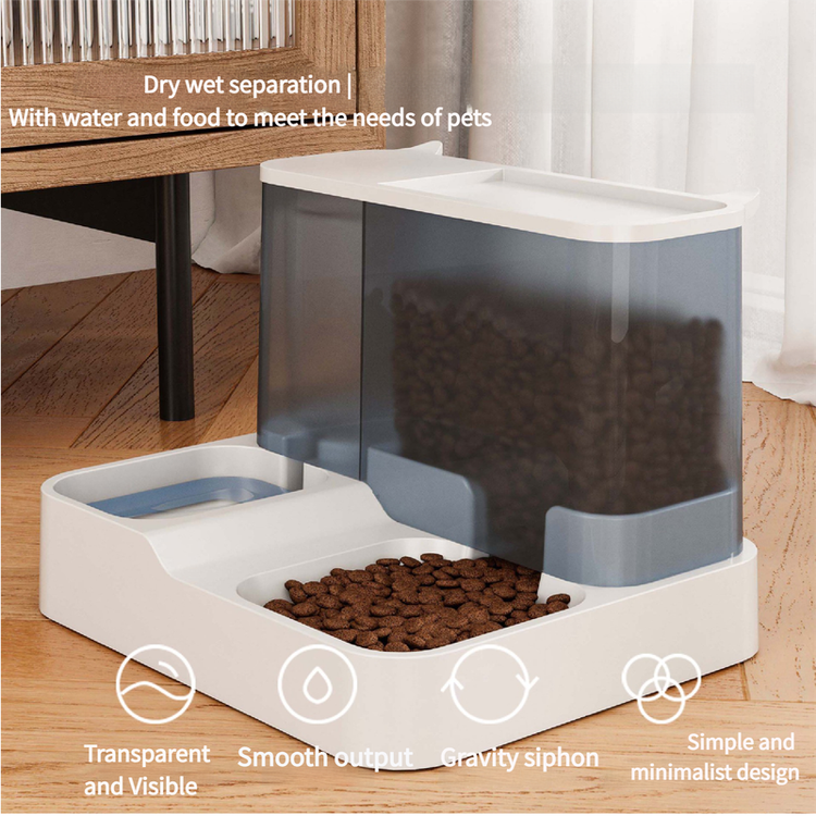 • Dual Functionality: Combines a food dispenser and water tank in one compact unit, saving space and simplifying pet care.