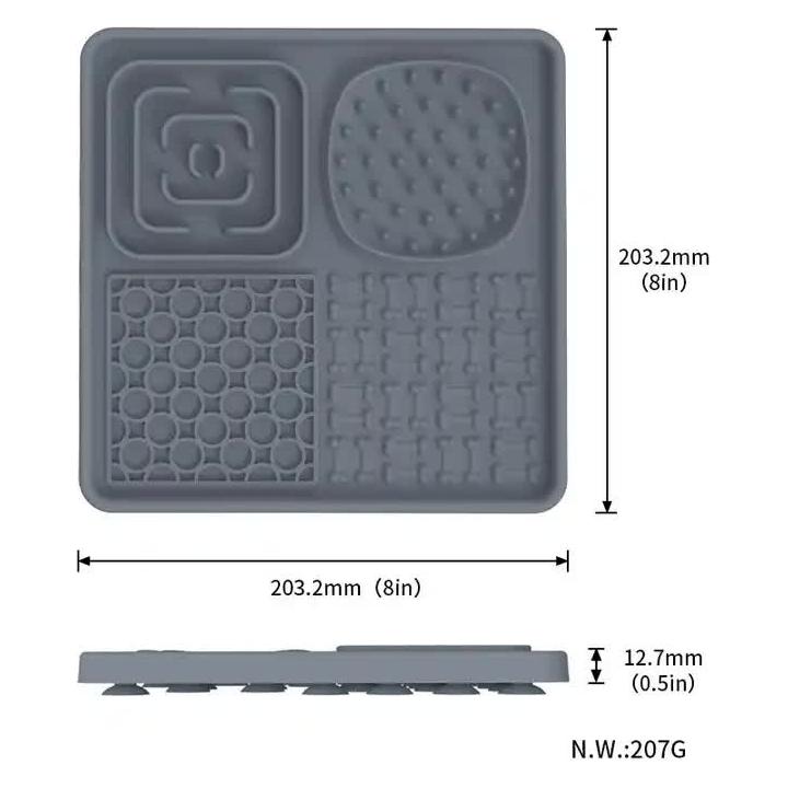• Slow feeder mat with multiple textures to stimulate healthy eating habits