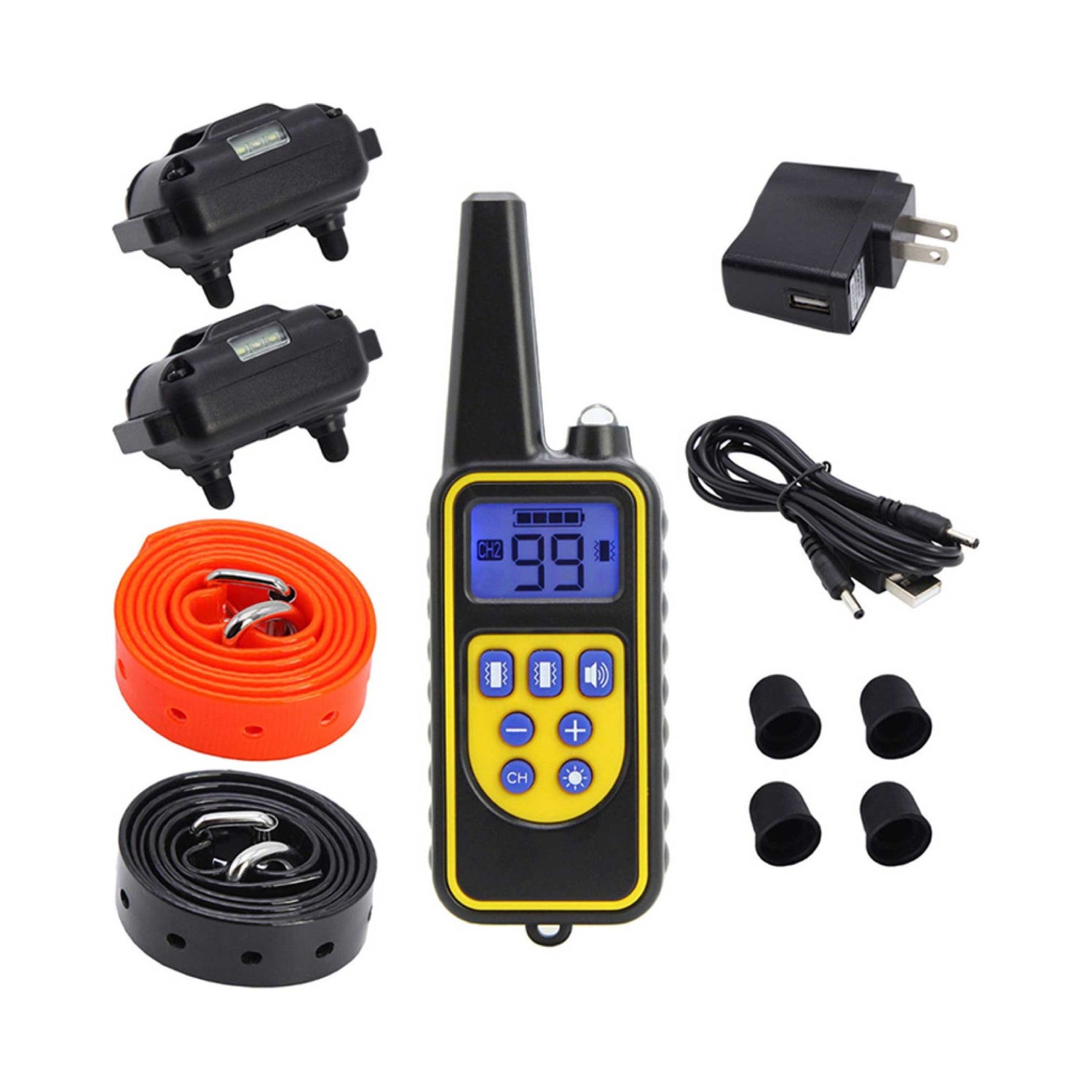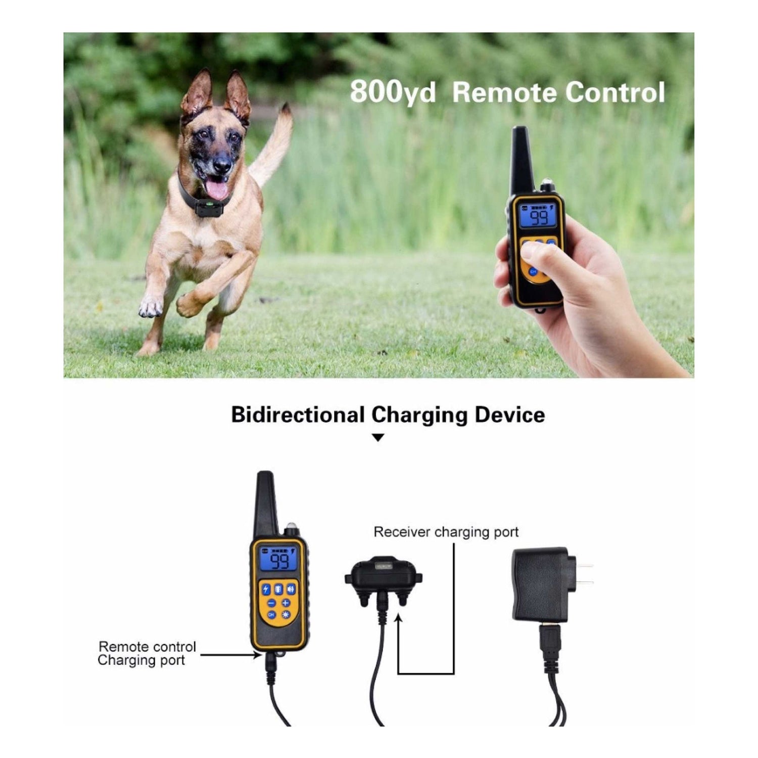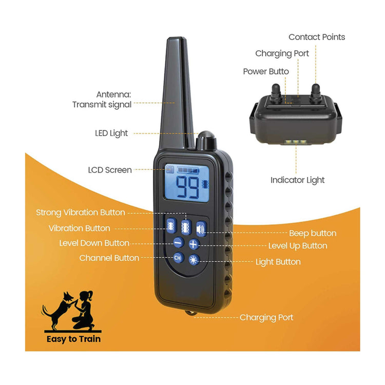 The 800m Remote Control Dog Training Collar will help you to train 2 dogs at a time. Teach your pet dog or puppy obedience to stop barking, hunting, digging, jumping up, bolting, aggressiveness and so on.