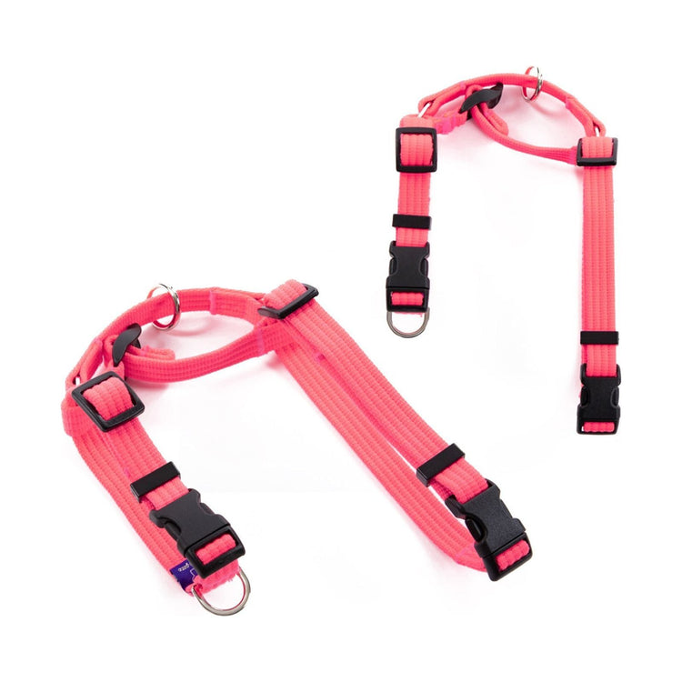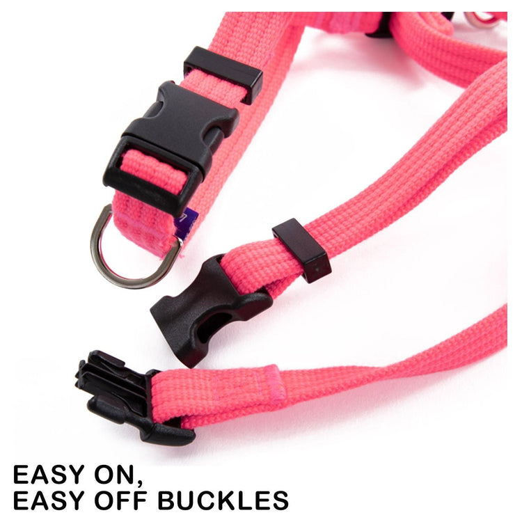 Banhamsisun L Dog Double-Lined Straps Harness and Lead Set Leash Adjustable No Pull - Neon Carol-Pink
