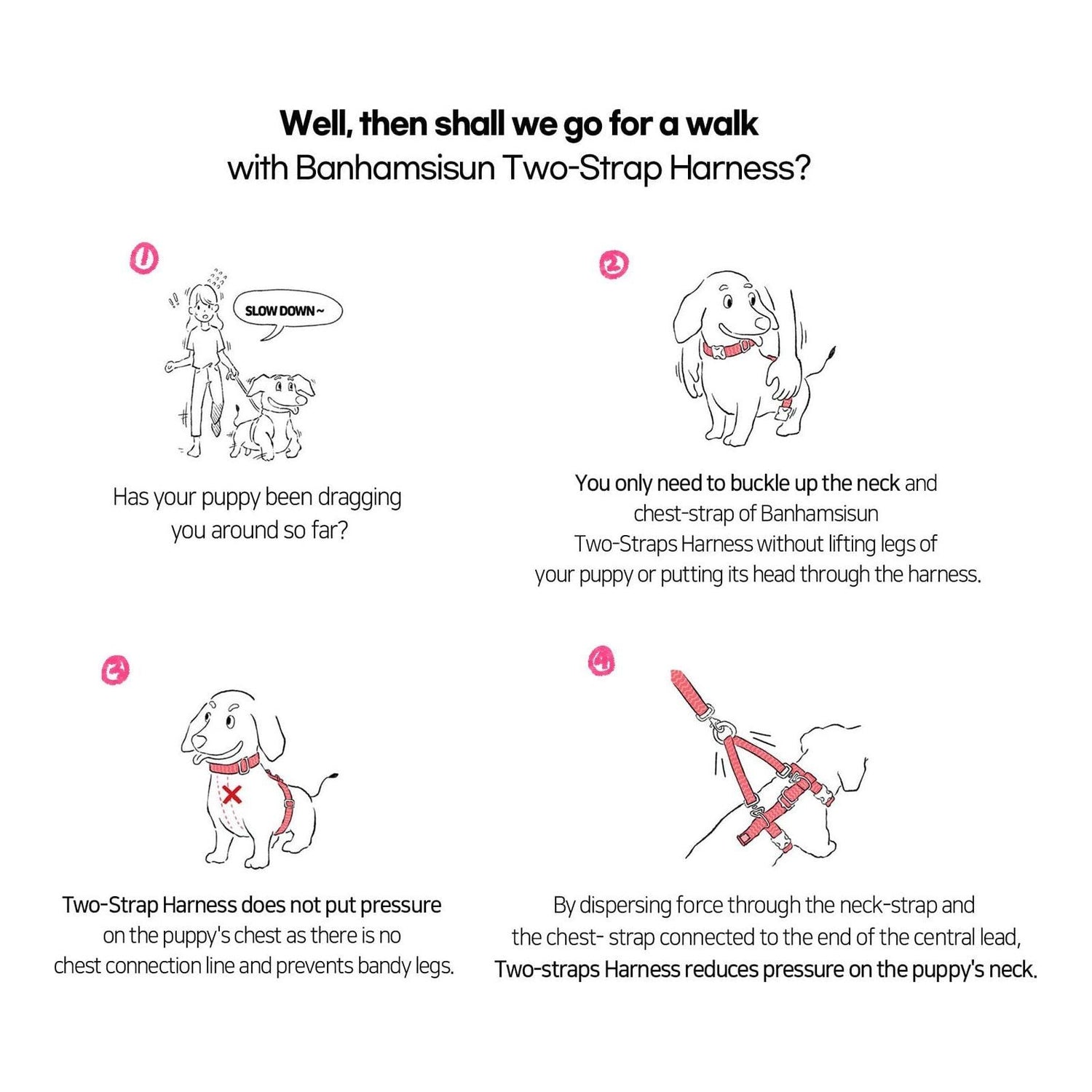 - Chest-Strap: When pets lean backward, and try to slip out of the harness, it keeps them securely in place