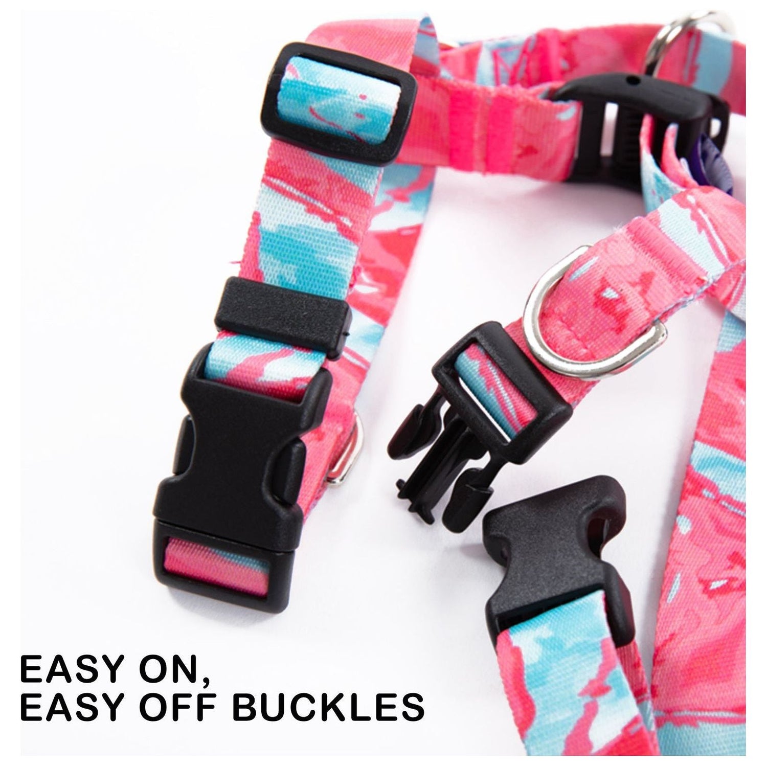 Banhamsisun S Dog Double-Lined Straps Harness and Lead Set Leash Adjustable No Pull - Marble Pink