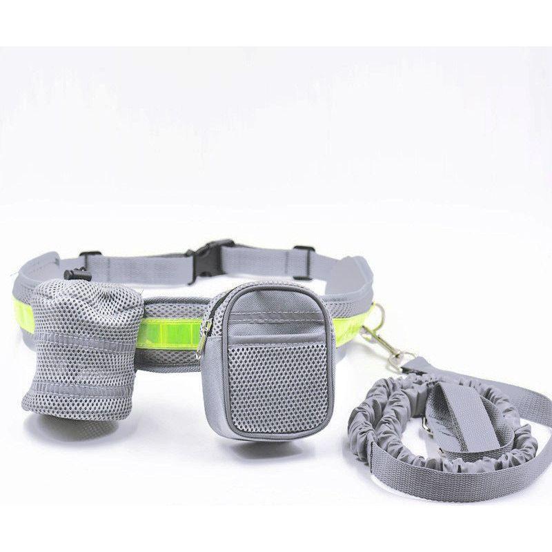 Grey Reflective Pet Waist Bag with Hands-Free Leash for Night Safety - Adjustable Waist Pack with Detachable Pouches