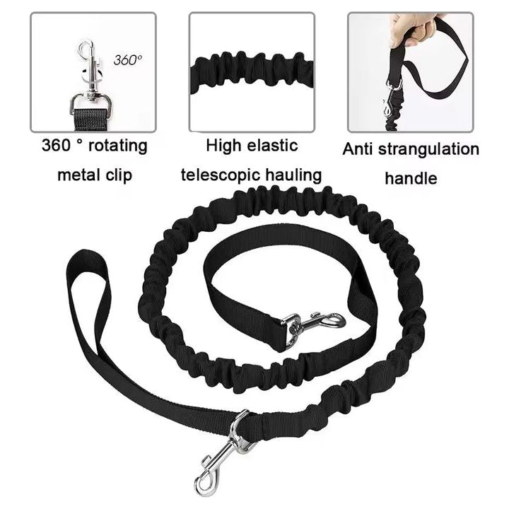 • Stretchable Leash: High-elastic bungee leash extends up to 144cm, offering flexibility for your pet's movements.