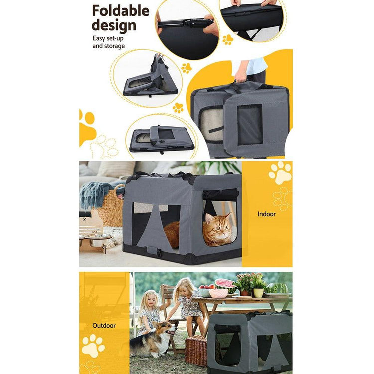 Going on holiday, to the vet, or to a boarding facility? Travelling with your furry friend can be stressful. With our i.Pet's XL Pet Carrier, it's easy to travel with your furry friend. It makes a smart and safe solution to taking your pets outdoors. Our pet carrier has ample space for your dear pets to sit and rest, which prevents them from feeling trapped, anxious, or restricted. It's constructed from a durable 600D oxford cloth for durable and long-lasting use, and the mesh sidewalls with see-through window allow proper airflow and ventilation. The two access doors with zippered openings enable easy entry and exit. You can even remove the top roof cover for added comfort and convenience. Our i.Pet's pet carrier boasts a washable design with a removable mat and cover that makes it easy to keep clean. It features a portable design with an easy set-up and foldable structure and a durable handle that makes it easy to carry wherever you go. Bring this pet carrier today for your convenience and beloved pet's comfort.