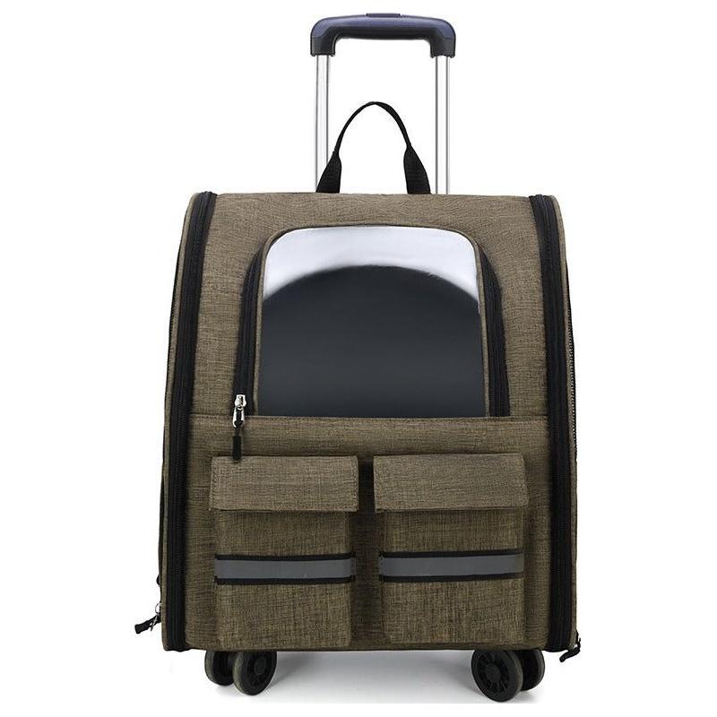 khaki 3-in-1 Pet Carrier: Rolling Backpack with Collapsible Design