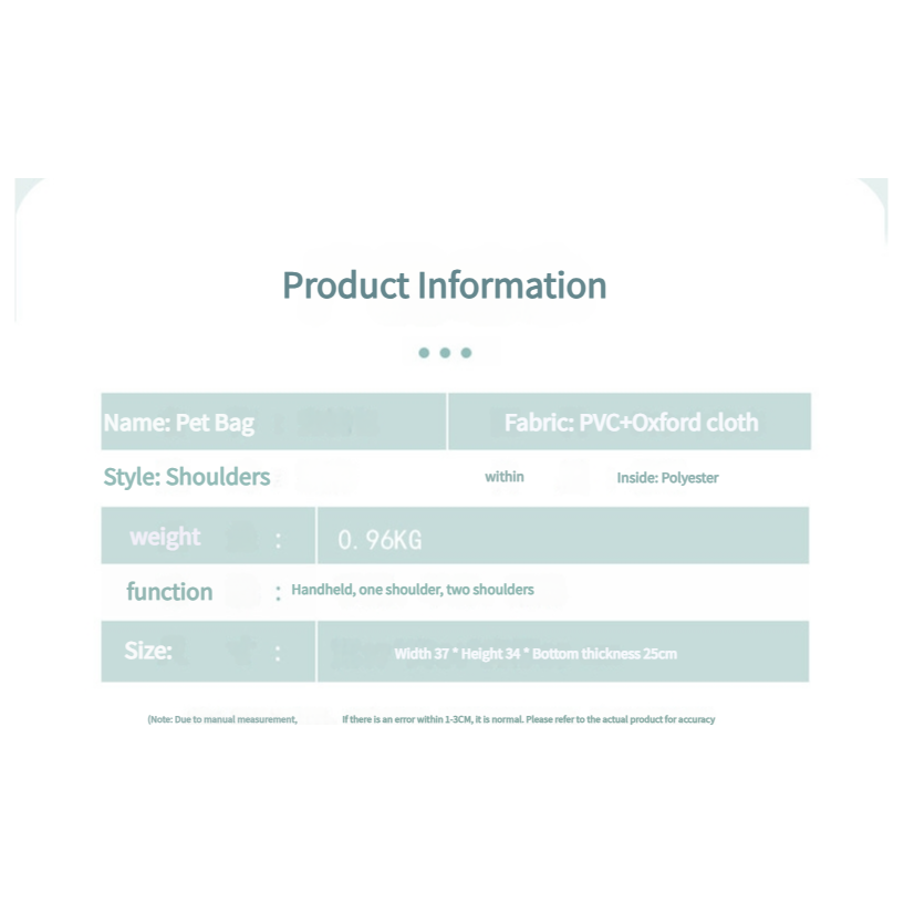 Explore the world together with your furry companion in this transparent pet carrier backpack! Designed for ultimate comfort and visibility, this spacious and breathable backpack allows your pet to enjoy the sights and sounds of your adventures while keeping them safe and secure by your side.