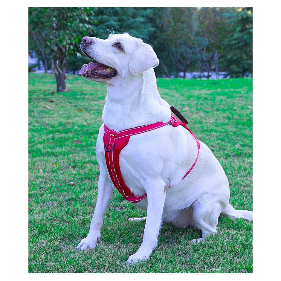 Tired of your dog pulling on walks? This no-pull dog harness is designed to make walks more enjoyable for both you and your furry friend! The vest-style design provides comfortable, even pressure distribution, while the front clip leash attachment helps redirect your dog's forward momentum, discouraging pulling. Made with durable, breathable materials and featuring reflective stitching for added safety during nighttime walks, this harness is perfect for dogs of all sizes.