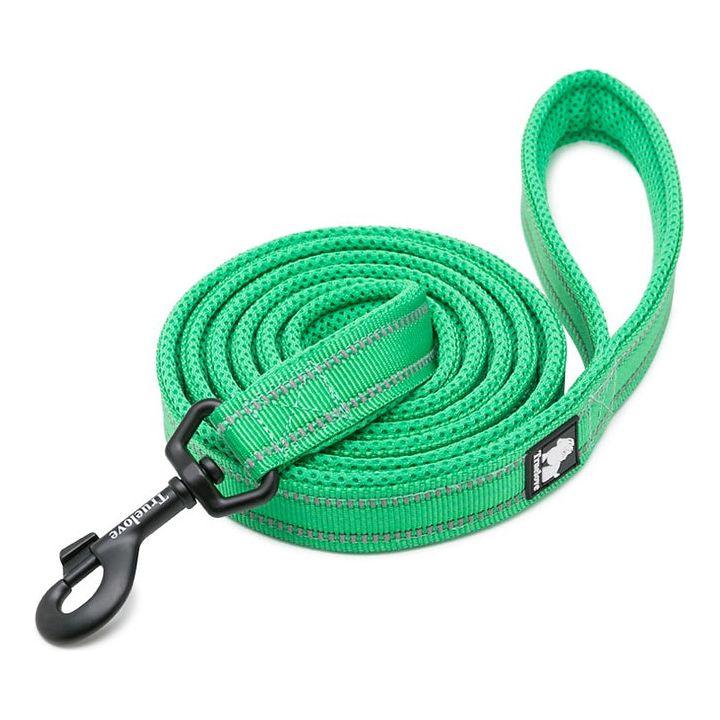 Nylon reflective Dog lead. Enjoy walking your dog with this stylish Dog lead. The lead is made from nylon material with 3M reflectors to ensure visibility at night time. The durable swivel hook is made from lightweight zinc alloy which has a large loading capacity and tensile strength for larger dogs. It has wide soft mesh padding and an ergonomic design making it easier for you to grip. Available in 11 stunning colours and sizes in 2 metre lengths.