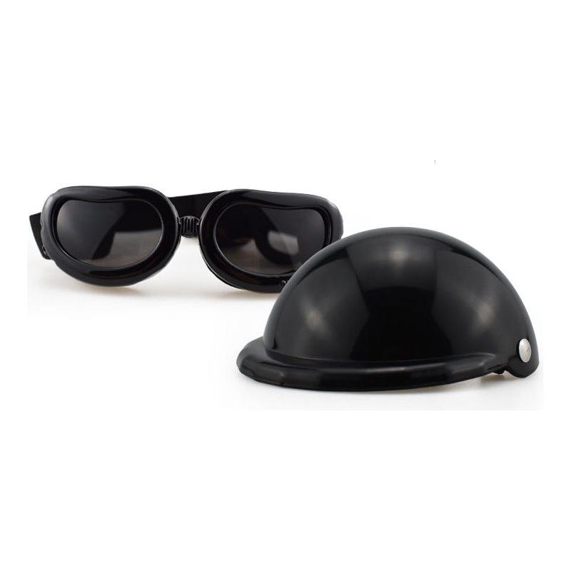 Size S Black Pet Helmet & Goggles Set - Adjustable Safety Gear for Dogs, UV Protection, Durable ABS Material, Stylish Outdoor Accessory