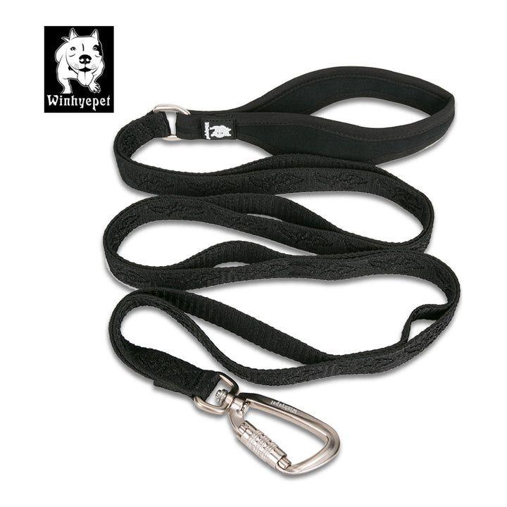Active Dog lead. The functional lead is perfect for the adventurous Dog. The multi functions allow you to shorten the lead when needed. Made of polyester material. The handle is padded with the softest neoprene material and is connected to the lead with the alloy D ring. Can be accessorised with the matching collar and harness.