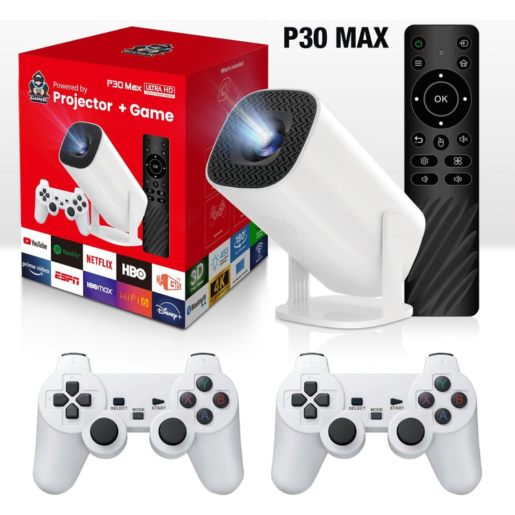 Transform your living room into a multimedia hub with the P30 Max projector. This all-in-one device combines 4K Ultra HD projection, 3D gaming, and streaming capabilities for endless entertainment. With dual wireless controllers, enjoy gaming with friends or family, and stream your favorite content from platforms like Netflix, YouTube, and Disney+.