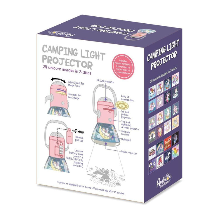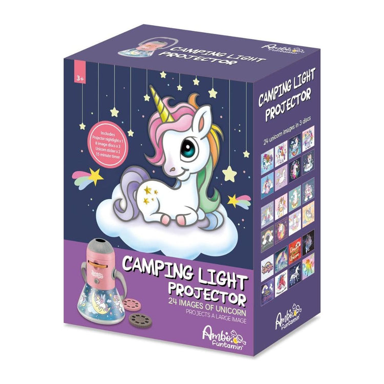 Step into a world of sparkle and with the Unicorn Camping Light Projector! This adorable projector lights up the night with enchanting unicorn images, perfect for creating a dreamy, starry atmosphere on tent walls or ceilings. Whether it's for a sleepover, backyard campout, or a night indoors as it also featured a nightlight function, this mini camping light brings fun and adventure wherever it goes!