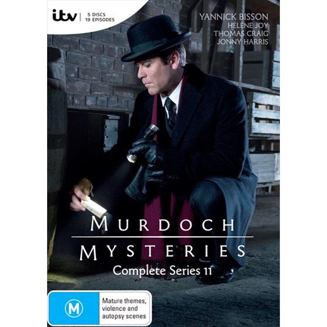 Season eleven of the top-rated, internationally acclaimed series begins with Murdoch jailed and framed for the murder of a burlesque dancer. His constables were gunned down in an ambush, Brackenreid was last seen with a gun to his head, and the corrupt politician and his cronies responsible kidnapped Ogden. Murdoch must prove his innocence from behind bars, as Detective Llewellyn Watts helps covertly to solve the case. Cases feature the return of Alexander Graham Bell, who assists Murdoch after a guest is murdered at a unique dinner honouring Helen Keller. A bizarre automobile accident must be solved before a deadly deadline, and a radical surgeons attempts to perform an organ transplant operation are disrupted by Christian Science founder Mary Baker Eddy. After a painter is found murdered, Brackenreid picks up his paintbrush again to investigate, attracting the attention of a lascivious patron. And when a series of elderly men commit suicide, overzealous reporter Louise Cherry lambastes Dr. Charles Osler, the father of modern medicine. And, Brackenreids son John makes a career choice against the wishes of his mother Margaret.