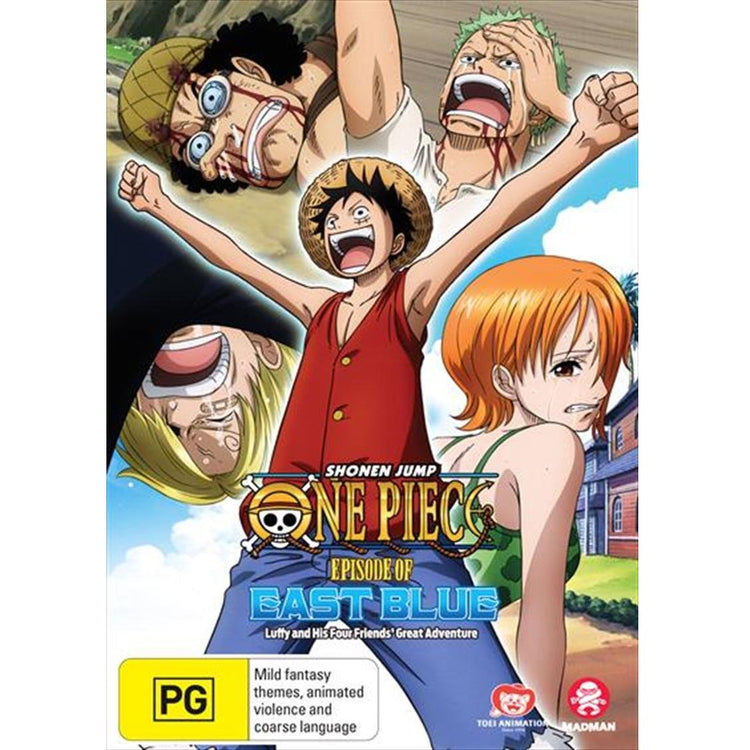 Experience the inspiring moments that launched Luffy and the first four members of his crew on their grand adventure to find the One Piece! Its all here - from Shanks giving Luffy the straw hat, to Nami facing the Fish-Men at her hometown. Along the way, Zoro finds his swordsmans zeal, Usopp pays for his pranks, and Sanji sizzles up the Baratie. Join the crew where it all began in the waters of East Blue.