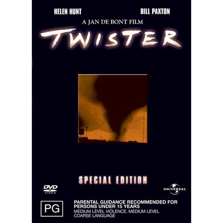 The house rips apart piece by piece. A bellowing cow spins through the air. Tractors fall like rain. A 15,000-pound gasoline tanker becomes an airborne bomb. A mile-wide, 300 miles-per-hour force of total devastation is coming at you: Twister is hitting home. In this adventure swirling with cliffhanging excitement and awesome special effects, Helen Hunt and Bill Paxton play scientists pursuing the most destructive weatherfront to sweep through mid-America's Tornado Alley in 50 years. By launching electronic sensors into the funnel, the storm chasers hope to obtain enough data to create an improved warning system. But to do so, they must intercept the twisters' deadly path. The chase is on!
