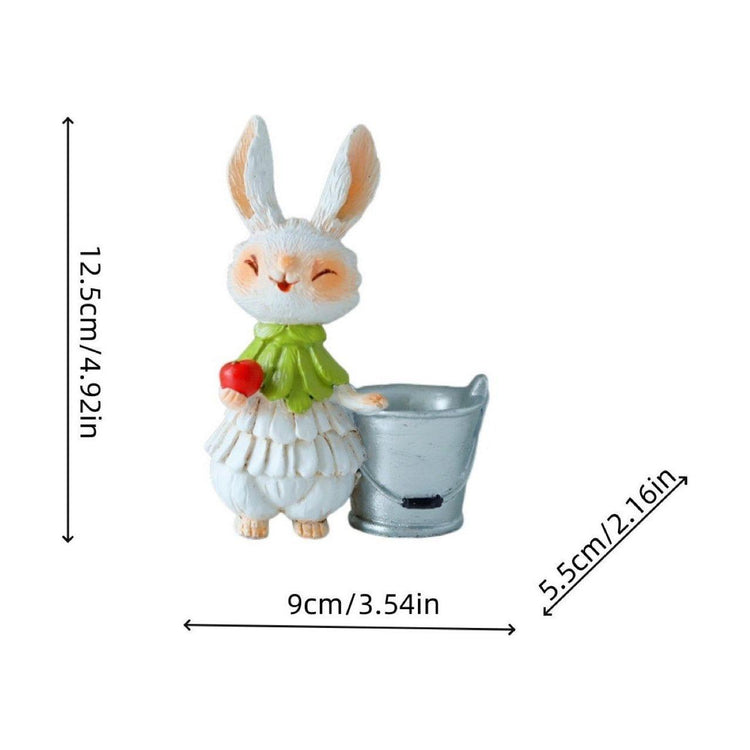 Green Bunny with Bucket Whimsical Bunny Garden Decor - Easter Flower Pot Statue