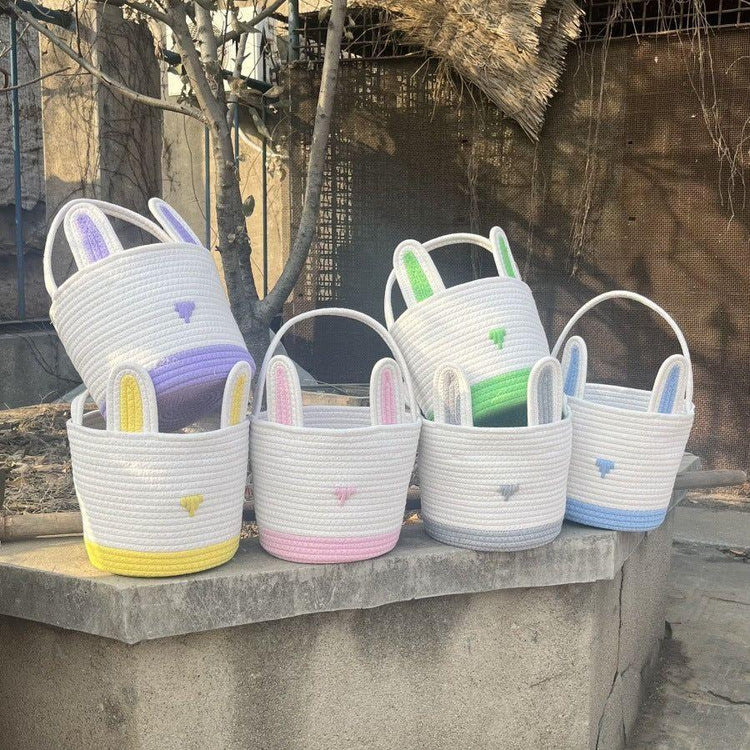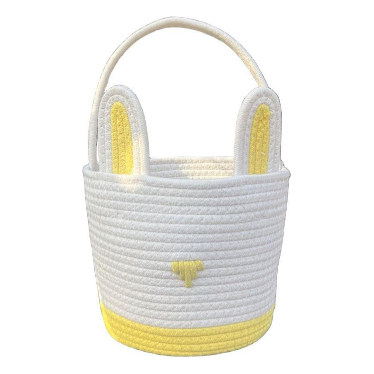 Yellow And White Stitching Charming Easter Egg Tote Basket - Cute Rabbit-Themed Handwoven Cotton Rope Candy Holder