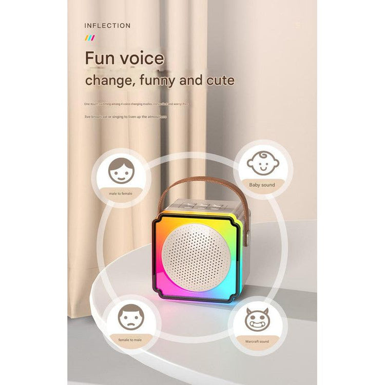 Bring the party anywhere with this fun and stylish Portable Mini Karaoke Machine & Bluetooth Speaker! Combining a high-quality Bluetooth speaker, a wireless microphone, and dazzling RGB lighting effects, this compact system is perfect for home KTV nights, family gatherings, kids' parties, outdoor camping, and more.