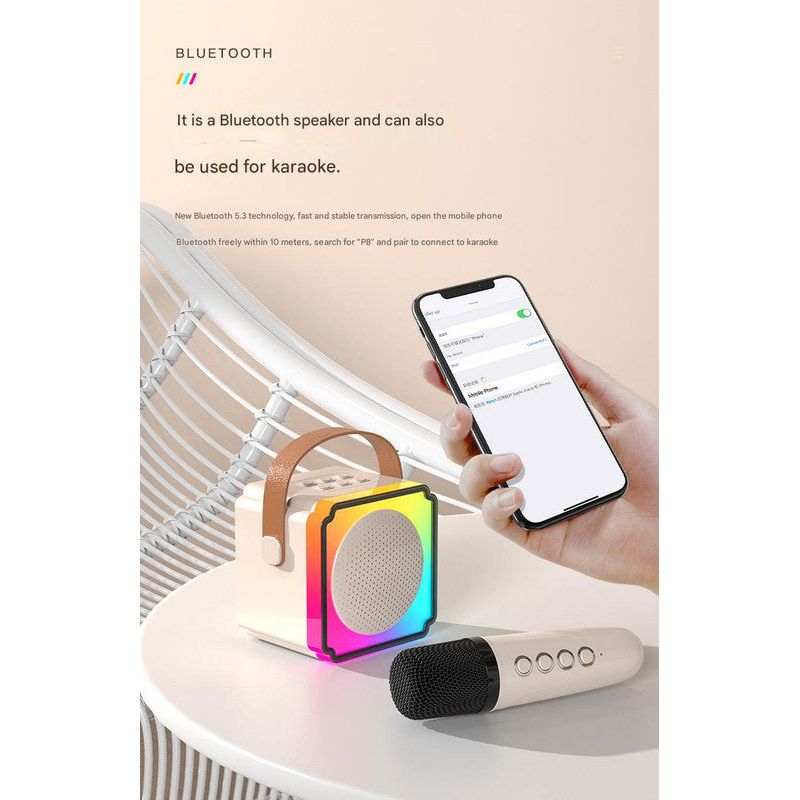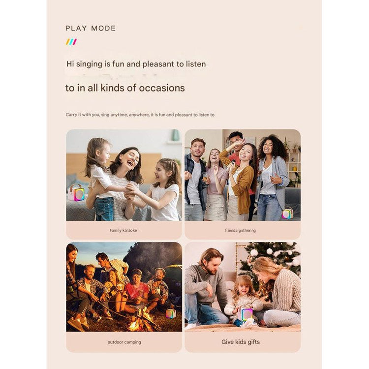 Bring the party anywhere with this fun and stylish Portable Mini Karaoke Machine & Bluetooth Speaker! Combining a high-quality Bluetooth speaker, a wireless microphone, and dazzling RGB lighting effects, this compact system is perfect for home KTV nights, family gatherings, kids' parties, outdoor camping, and more.