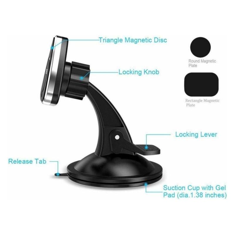 Car magnetic base Compatible with all Smarthone (Not compatible with MagSafe) tablet, GPS devices or any other device. It has a 360° rotating head for direct adjustment of the device in a horizontal or vertical position as well as a tilt pin in each direction. The placement of the smartphone is achieved with a magnetic sticker which adapts to the back of the device (included in the package), comes with 2 cable sockets for use while charging the device. Multi-functional use, it does not have to be used exclusively in a car, you can also use it as a support base for the mobile phone in the kitchen, in the office, or wherever you want.