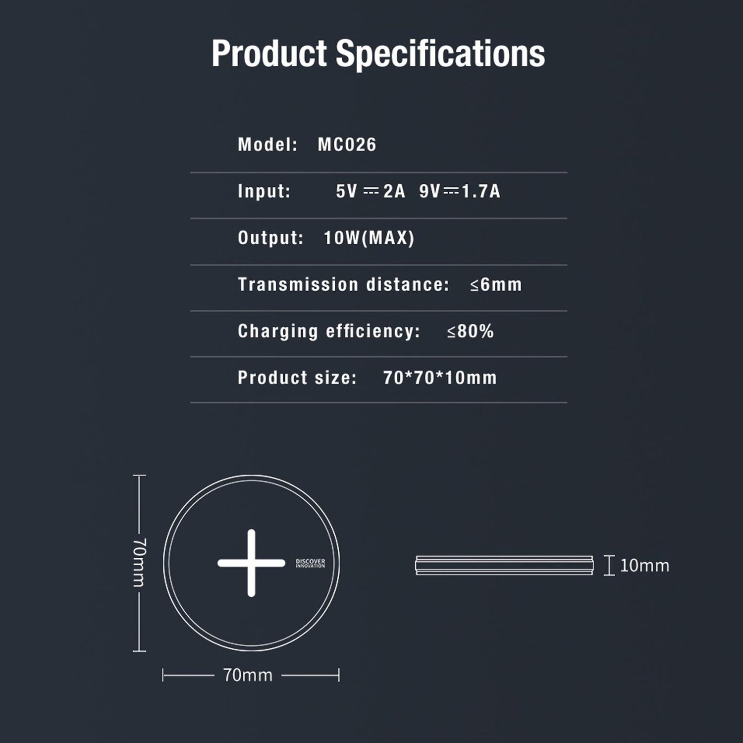 • 1 x Fast Charging Wireless Charger Portable Button Design