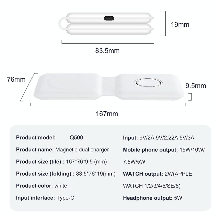 • 1 x Foldable Dual Wireless Charger For Phones Iwatch Airpods
