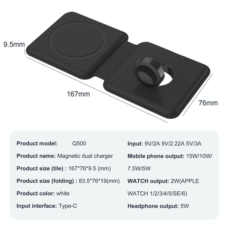 • 1 x Foldable Dual Wireless Charger For Phones Iwatch Airpods