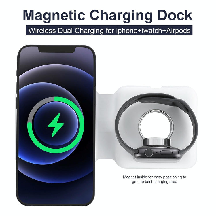 Foldable Dual Wireless Charger For Phones Iwatch Airpods - White