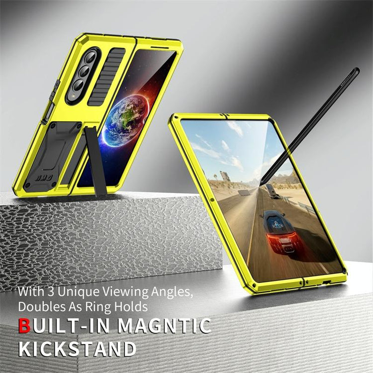 For Samsung Galaxy Z Fold4 5G Shockproof Metal Case With Holder - Silver