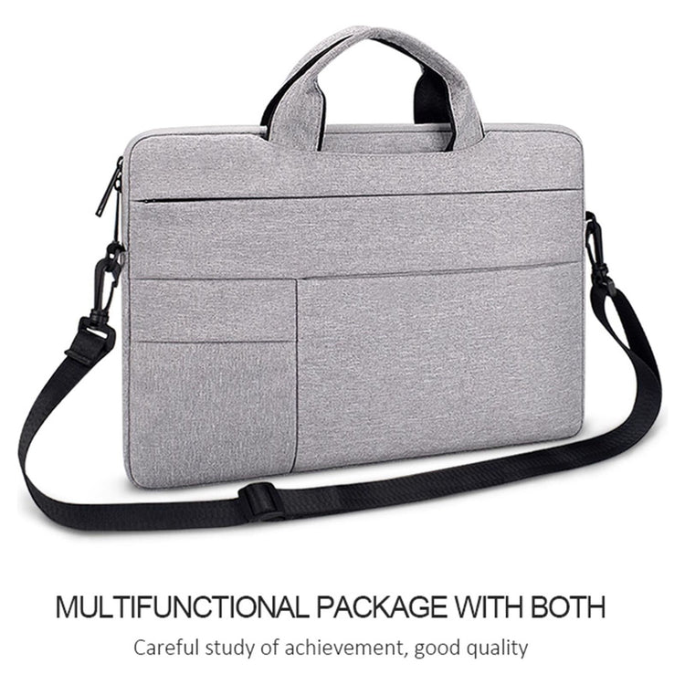 14.1-15.4 Inch Portable Laptop Shoulder Bag In Oxford Cloth & Nylon - Hemp Gray