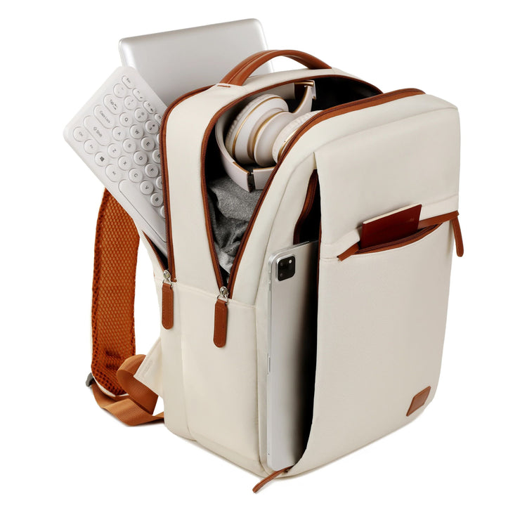 Beige Minimalist USB Charging Laptop Backpack - Elegant and Spacious Travel Bag